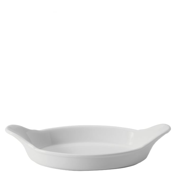 White china oval eared vegetable serving dish.