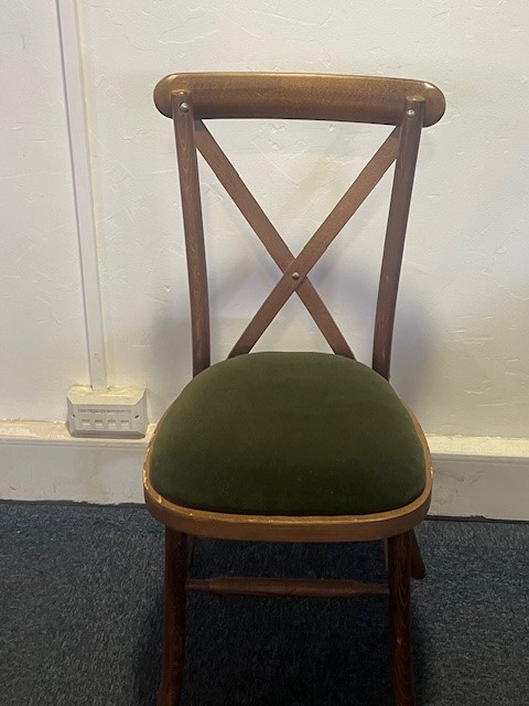 Our Oak Crossback Chairs are fast becoming one of the most popular chairs for every event. Try our oatmeal pads for a rustic style or ivory for a brighter tone. A green seat pad is the perfect match for those darker botanical and woodland style weddings.